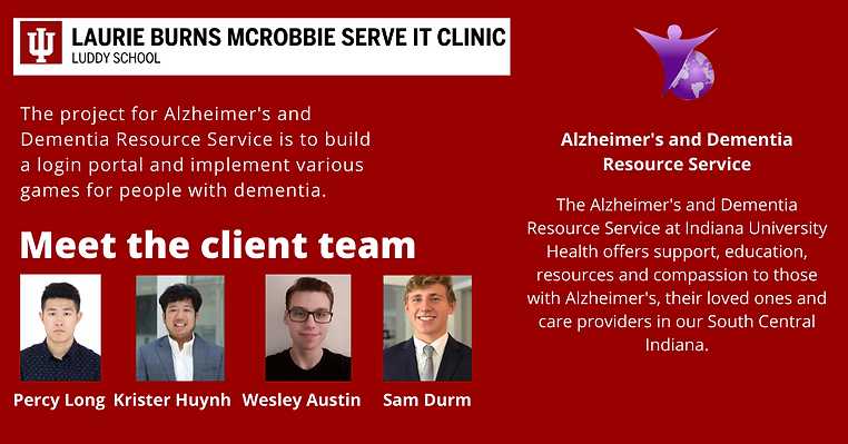 This was a semester-long team project for the Serve IT internship from September to December 2021. As part of Serve IT interns, we were tasked to help Alzheimer's and Dementia Resource Service(DRS), a health organization affiliated with IU Health, add a login page and implement a page with brain teaser games for users with dementia. We delivered an accessible redesign site with a login portal, brain teaser page, site reconstruction, and updated design and navigation at the end.